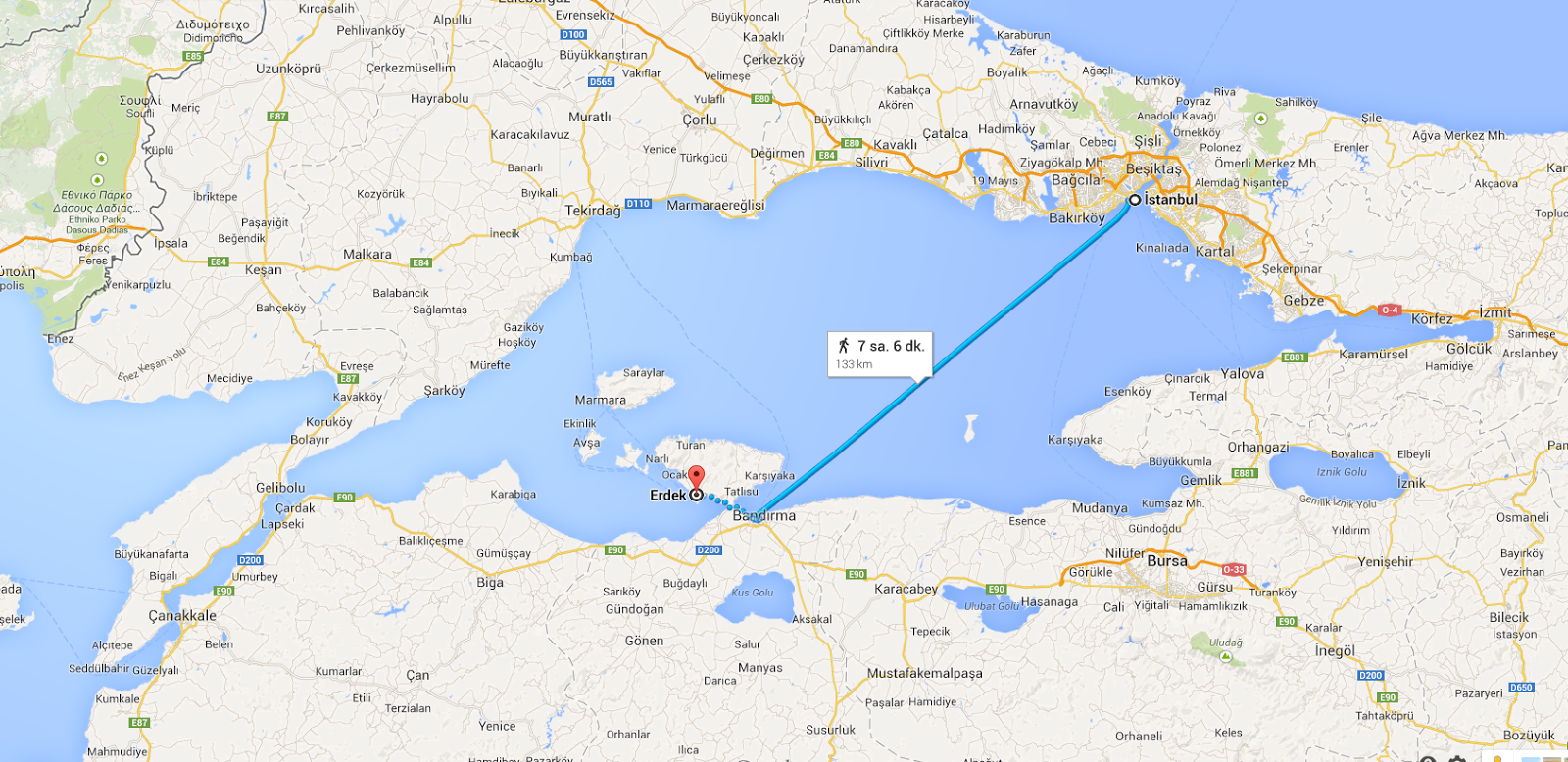 Yalova Erdek Arasi Mesafe Yalova Erdek Yol Haritasi Yalova Erdek Kac Saat Kac Km
