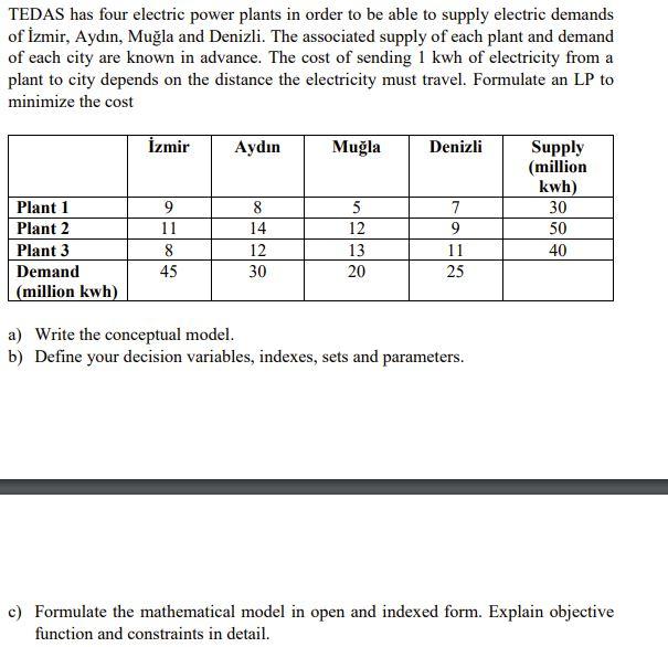 Tedas Has Four Electric Power Plants In Order To B Chegg Com