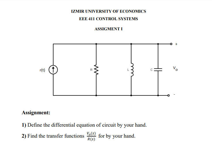 Izmir University Of Economics Eee 411 Control Syst Chegg Com