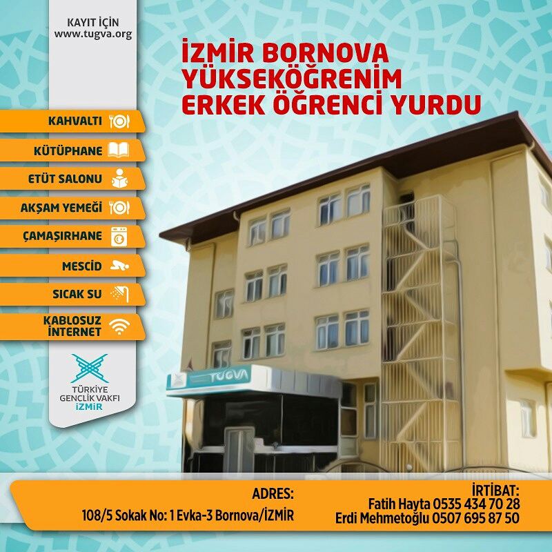 İzmir in seferihisar ilçesi açıklarında meydana gelen 6 6 büyüklüğündeki depremin ardından türkiye gençlik vakfının tügva i̇zmir deki 3 yurdu depremzedelerin kullanımına açtı. Haftanın her günü sabah akşam yemeği vardır. 2020 2021 devlet yurtları hakkında bilgiler 2020 yılında üniversiteye yerleşen veya halen üniversiteli olup da ara sınıf için kyk yurt başvurusu yapmak isteyen adayların kafasında kyk yurt ücretleri yemek odaların durumu yurdun temizliği ısınma sıcak su internet buzdolabı güvenlik gibi sorular bulunmakta. İbn haldun üniversitesi külliyesi cumhurbaşkanımız recep tayyip erdoğan ın teşrifleriyle açıldı.