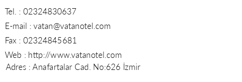 Vatan Hotel Izmir Iletişim